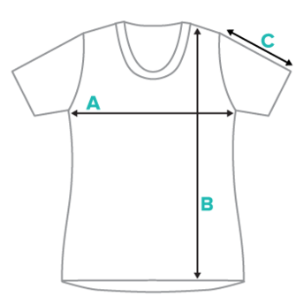 A - 1/2 Chest Width; B - Length; C - Sleeve Length